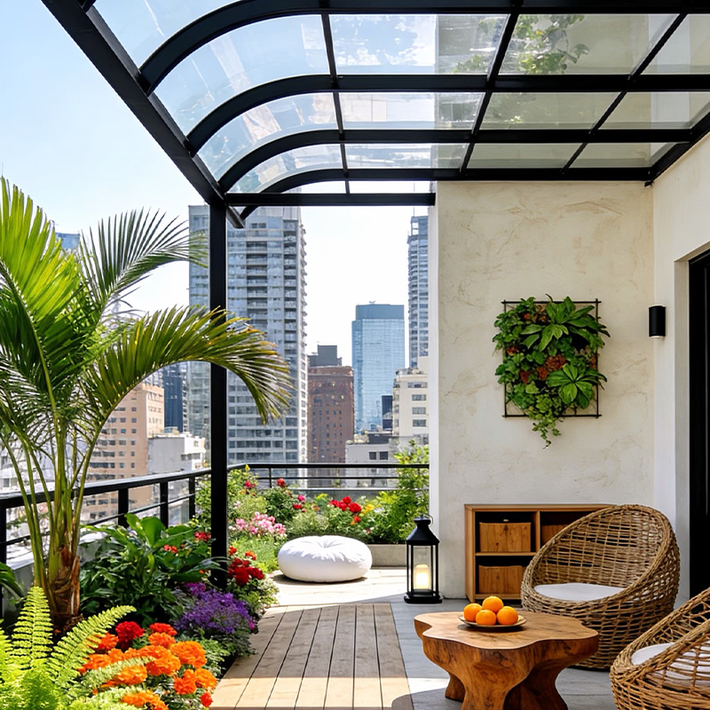 High-transparency tempered glass fills both the arched roof and the surrounding side panels, delivering generous, diffused natural light across the full interior. The aluminum frame surface is weatherproof-coated for long-term outdoor durability, and optional roller blinds and operable ventilation windows can be incorporated into the arch structure without disrupting the roof line. The arched roof sunroom is suited to villas, large residential terraces, and commercial hospitality outdoor areas where architectural quality and structural reliability are equally important.