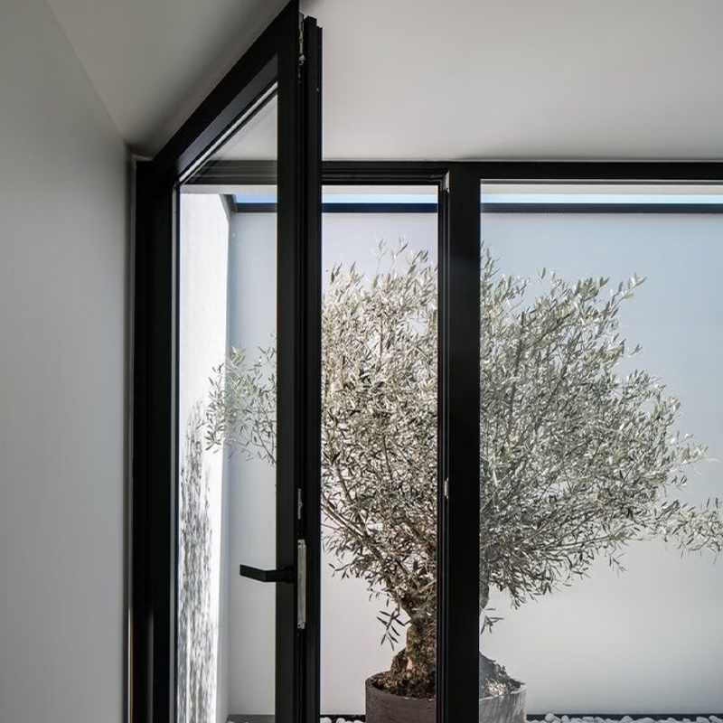 The aluminum alloy casement door uses a solid, precision-extruded frame and panel construction that provides structural rigidity and long-term dimensional stability under both thermal cycling and daily operational loading. Heavy-duty hinges and multi-point locking hardware ensure secure, rattle-free closure and reliable security performance across the door's full service life.