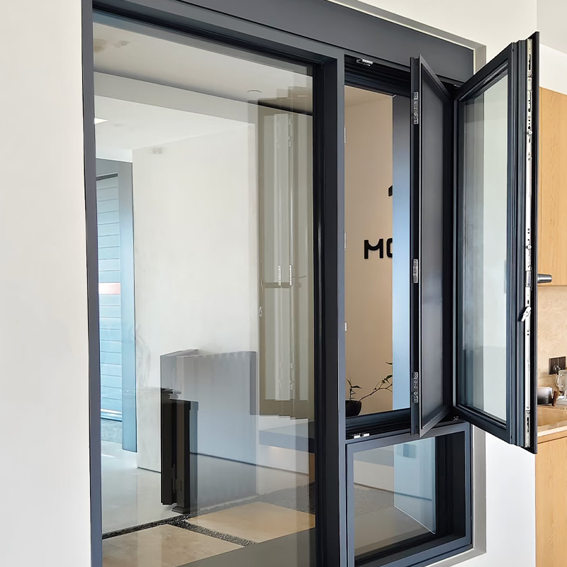 The inward casement aluminum alloy window swings the sash fully into the interior space, bringing the complete glazed surface within comfortable reach and enabling thorough, safe glass cleaning from inside the room without any exterior access — a significant practical advantage for multi-story and high-floor installations.